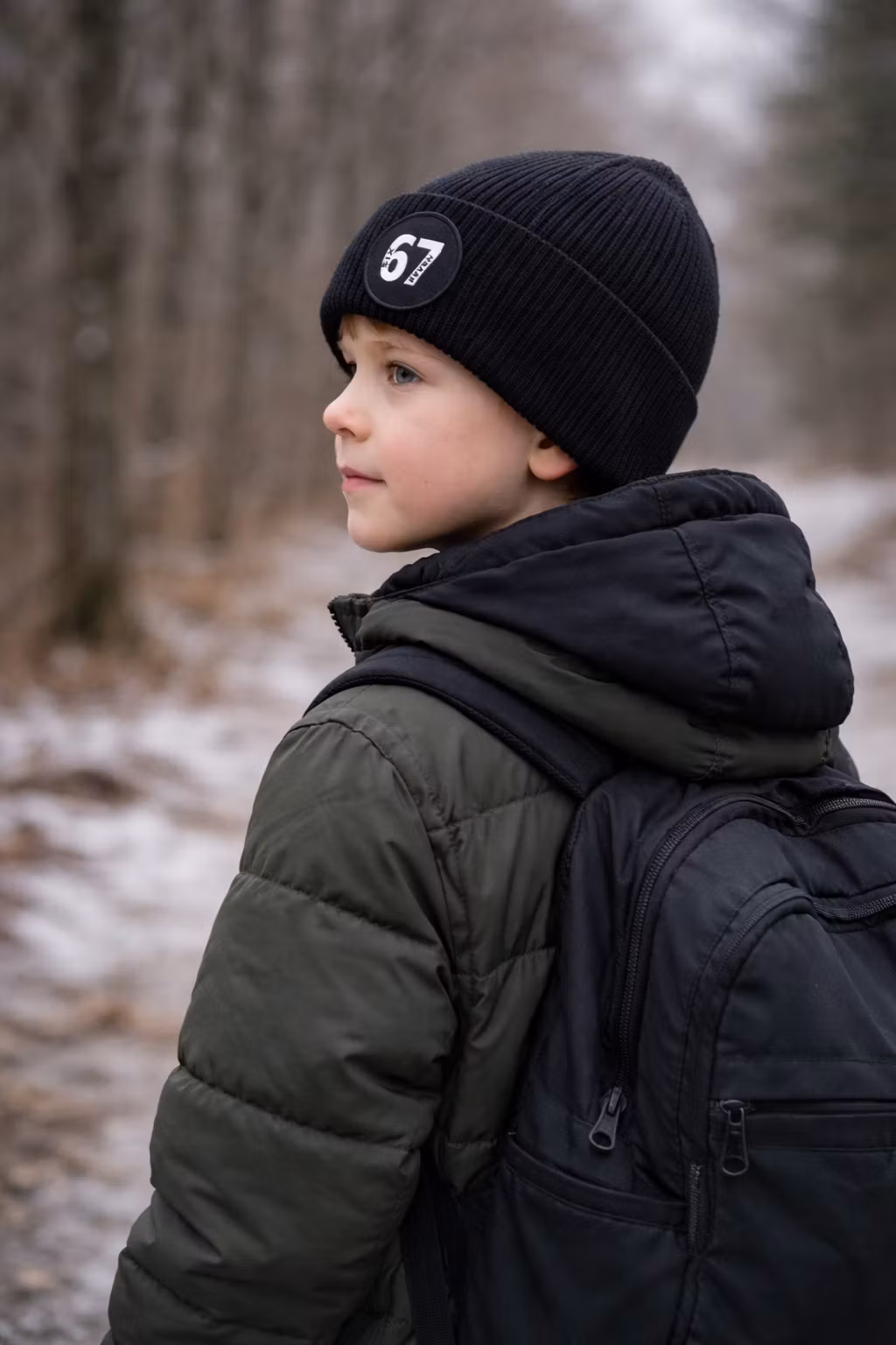 Stickad mössa med texten 67 (Six Seven) framtill. 52% återvunnen polyester, 47% akryl, 1% elastan